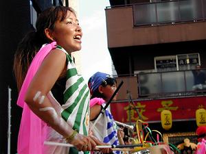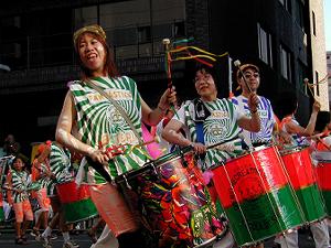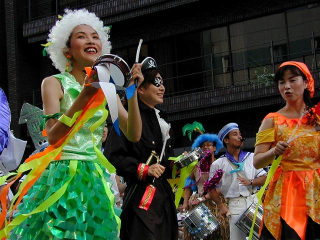 今年はサミット開催と云うことで日程が少しずれて9月上旬に行われた恒例の浅草サンバカーニバルを見学してきました。 COOLPIX950で撮ったのですが、何せ被写体の動きが早くピント合わせが追いつかず辛うじて撮れたのもご覧の通りの日の丸構図です。まあ、楽しい雰囲気が伝わればよいかな、と思い公開します。