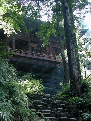 本堂は間口8間程の大きな建物。岩井堂と云われる奥の院は300段の石段を上った山中にある(写真2枚目)。岩井堂は岩壁に造られた三間四面の方形造りの堂で江戸中期の作である。 秩父の山中に清水寺に似た舞台造りの観音堂を建てるのはさぞや大変だったと思う。