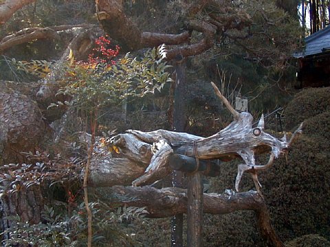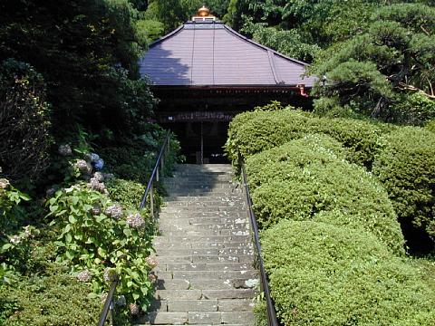 観音堂は3間4面の方形造りで江戸中期の建物である。ここには室町時代の古納札が保存されている。 山の斜面を活かした庭園は四季折々の草花が美しい。以前住職が自慢していた龍に見立てた枝は現在片づけら れてしまっていた(写真3枚目)。